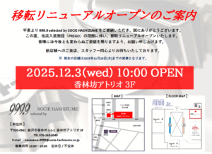 【お知らせ】999.9 selected by SOCIE HASHIZUME 移転オープンのご案内